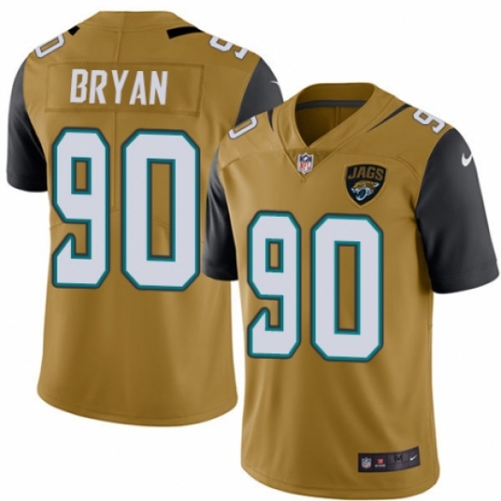 >Youth Nike Jacksonville Jaguars #90 Taven Bryan Limited Gold Rush Vapor Untouchable NFL Jersey
