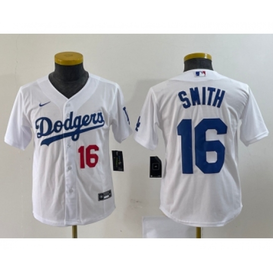Youth Los Angeles Dodgers #16 Will Smith Authentic White Home Cool Base Baseball Player Jersey