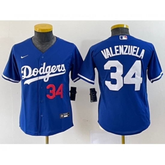 >Youth Nike Los Angeles Dodgers #34 Fernando Valenzuela Number Blue Stitched Cool Base Jersey