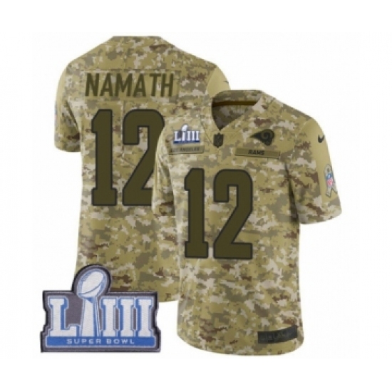 Youth Nike Los Angeles Rams #12 Joe Namath Limited Camo 2018 Salute to Service Super Bowl LIII Bound NFL Jersey