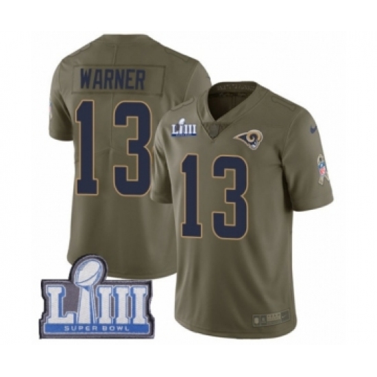 >Youth Nike Los Angeles Rams #13 Kurt Warner Limited Olive 2017 Salute to Service Super Bowl LIII Bound NFL Jersey