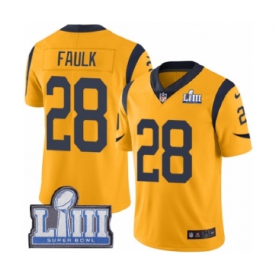 >Youth Nike Los Angeles Rams #28 Marshall Faulk Limited Gold Rush Vapor Untouchable Super Bowl LIII Bound NFL Jersey