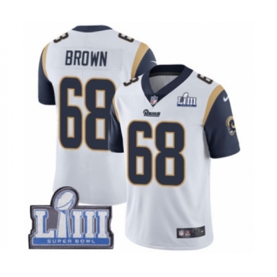 Youth Nike Los Angeles Rams #68 Jamon Brown White Vapor Untouchable Limited Player Super Bowl LIII Bound NFL Jersey