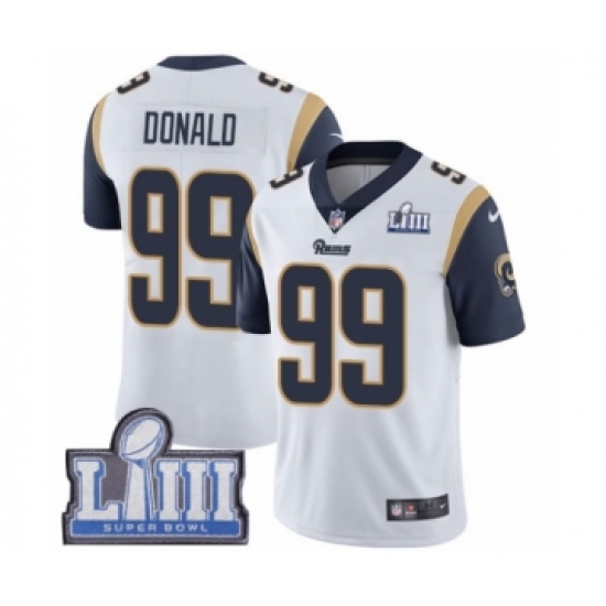 >Youth Nike Los Angeles Rams #99 Aaron Donald White Vapor Untouchable Limited Player Super Bowl LIII Bound NFL Jersey