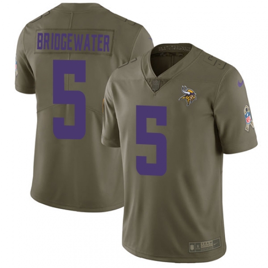 Home>NFL>Minnesota Vikings>Teddy Bridgewater>Youth Nike Minnesota Vikings #5 Teddy Bridgewater Limited Olive 2017 Salute to Service NFL Jersey