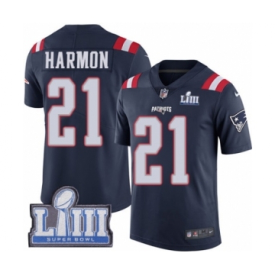 Men's Nike New England Patriots #21 Duron Harmon Navy Blue Team Color Vapor Untouchable Limited Player Super Bowl LIII Bound NFL Jersey