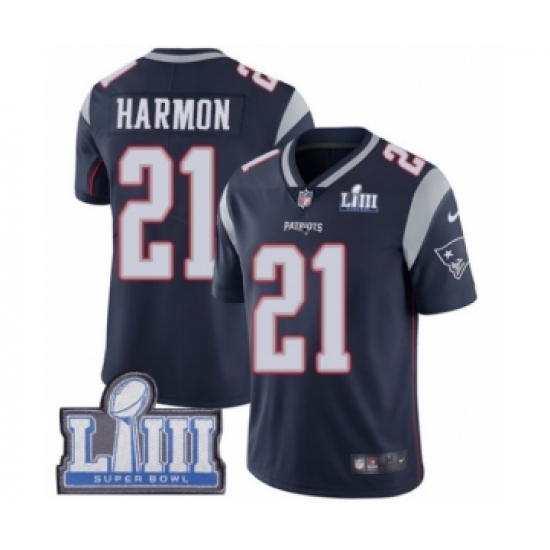>Youth Nike New England Patriots #21 Duron Harmon Navy Blue Team Color Vapor Untouchable Limited Player Super Bowl LIII Bound NFL Jersey