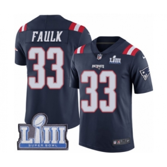 Men's Nike New England Patriots #33 Kevin Faulk Limited Navy Blue Rush Vapor Untouchable Super Bowl LIII Bound NFL Jersey