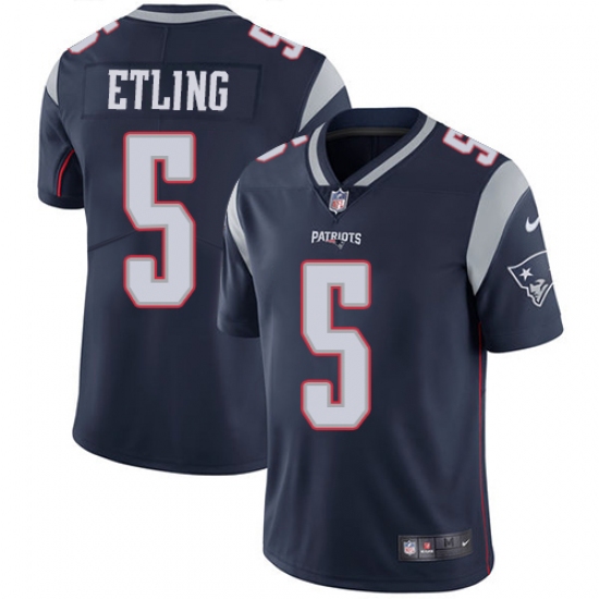 >Youth Nike New England Patriots #5 Danny Etling Navy Blue Team Color Vapor Untouchable Limited Player NFL Jersey