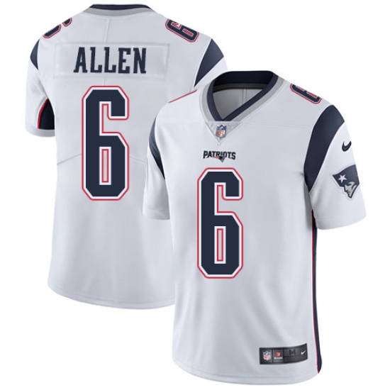 Home>NFL>New England Patriots>Ryan Allen>Youth Nike New England Patriots #6 Ryan Allen White Vapor Untouchable Limited Player NFL Jersey