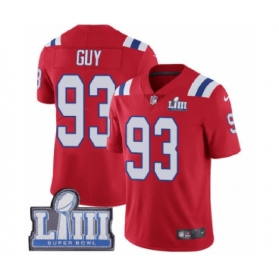 Youth Nike New England Patriots #93 Lawrence Guy Red Alternate Vapor Untouchable Limited Player Super Bowl LIII Bound NFL Jersey