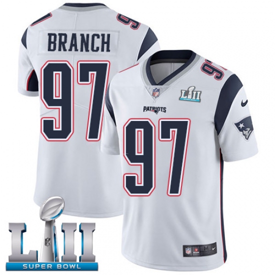 Home>NFL>New England Patriots>Alan Branch>Youth Nike New England Patriots #97 Alan Branch White Vapor Untouchable Limited Player Super Bowl LII NFL Jersey