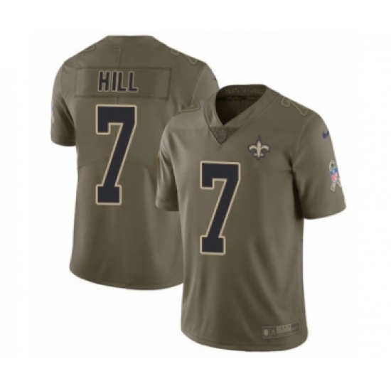 >Youth Nike New Orleans Saints #7 Taysom Hill Limited Olive 2017 Salute to Service NFL Jersey