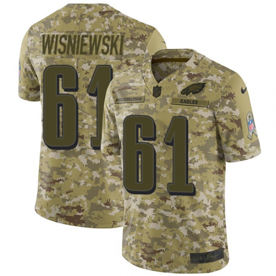>Youth Nike Philadelphia Eagles #61 Stefen Wisniewski Limited Camo 2018 Salute to Service NFL Jersey