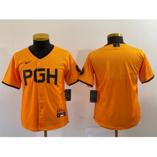 >Youth Nike Pittsburgh Pirates Blank Yellow 2023 City Connect Stitched Jersey