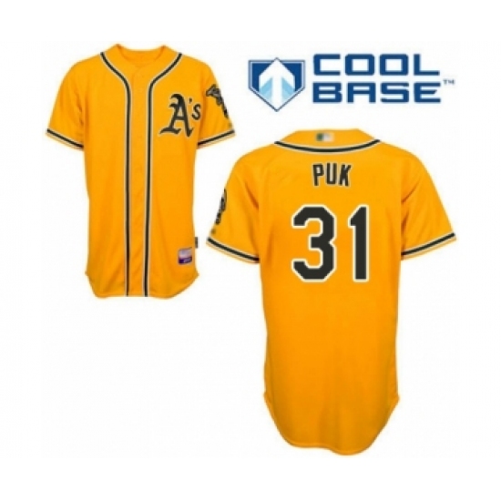 Youth Oakland Athletics #31 A.J. Puk Authentic Gold Alternate 2 Cool Base Baseball Player Jersey