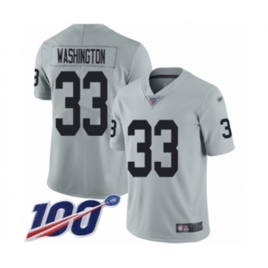 >Youth Oakland Raiders #33 DeAndre Washington Limited Silver Inverted Legend 100th Season Football Jersey