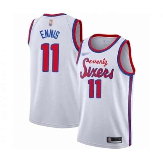 Men's Philadelphia 76ers #11 James Ennis Authentic White Hardwood Classics Basketball Jersey