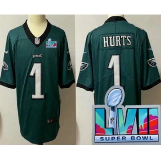 >Youth Philadelphia Eagles #1 Jalen Hurts Limited Green Super Bowl LVII Vapor Jersey