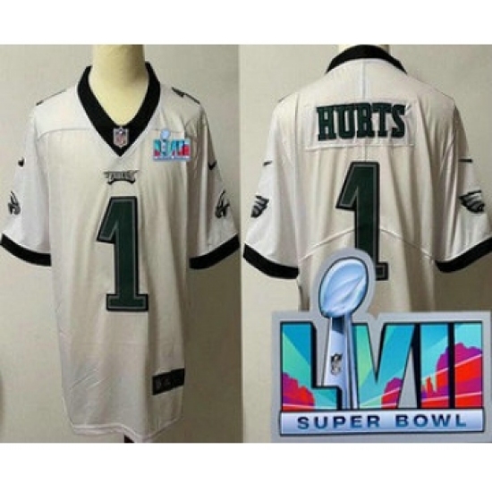 Youth Philadelphia Eagles #1 Jalen Hurts Limited White Super Bowl LVII Vapor Jersey