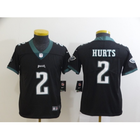 >Youth Philadelphia Eagles #2 Jalen Hurts Black Alternate Vapor Untouchable Limited Jersey