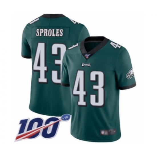 >Youth Philadelphia Eagles #43 Darren Sproles Midnight Green Team Color Vapor Untouchable Limited Player 100th Season Football Jersey