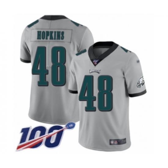 >Youth Philadelphia Eagles #48 Wes Hopkins Limited Silver Inverted Legend 100th Season Football Jersey