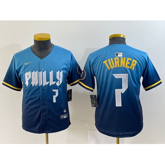 >Youth Philadelphia Phillies #7 Trea Turner Number Blue 2024 City Connect Limited Stitched Jerseys
