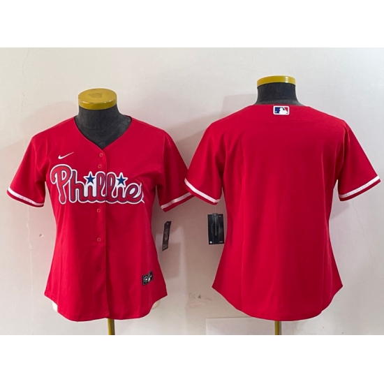 Women's Philadelphia Phillies Blank Red Stitched Cool Base Jersey