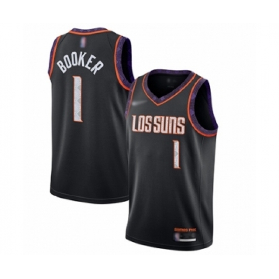 >Youth Phoenix Suns #1 Devin Booker Swingman Black Basketball Jersey - 2019 20 City Edition