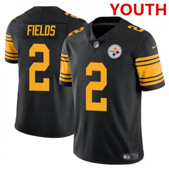 >Youth Pittsburgh Steelers #2 Justin Fields Black Color Rush Limited Football Stitched Jersey