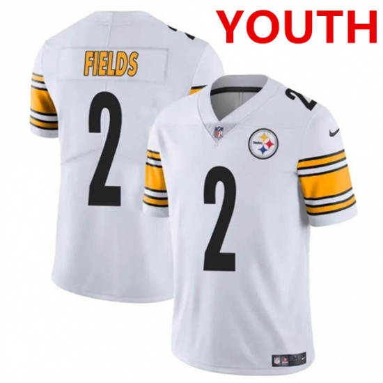 >Youth Pittsburgh Steelers #2 Justin Fields White Vapor Untouchable Limited Football Stitched Jersey