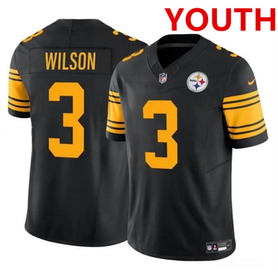 Youth Pittsburgh Steelers #3 Russell Wilson Black 2023 F.U.S.E. Color Rush Limited Football Stitched Jersey