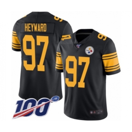 >Youth Pittsburgh Steelers #97 Cameron Heyward Limited Black Rush Vapor Untouchable 100th Season Football Jersey