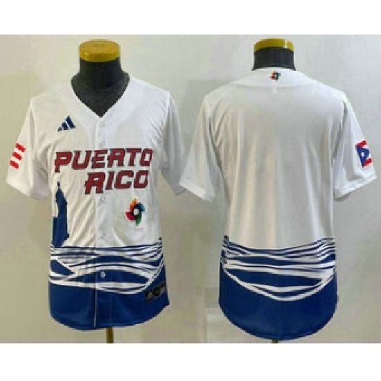 >Youth Puerto Rico Baseball Blank 2023 White World Baseball Classic Stitched Jersey