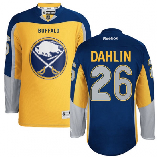 >Youth Reebok Buffalo Sabres #26 Rasmus Dahlin Authentic Gold Third NHL Jersey