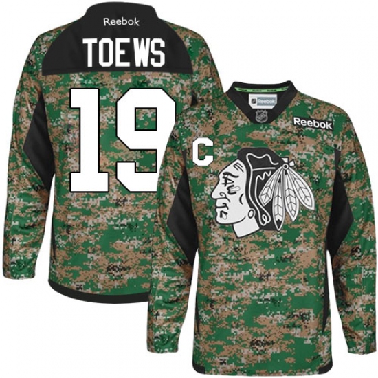 Youth Reebok Chicago Blackhawks #19 Jonathan Toews Authentic Camo Veterans Day Practice NHL Jersey