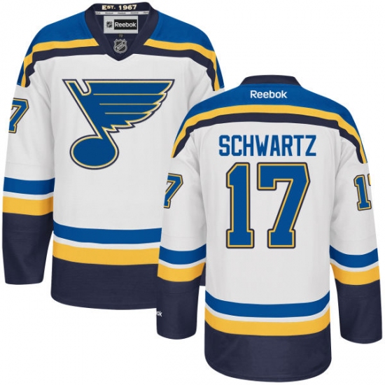 Home>NHL>St. Louis Blues>Jaden Schwartz>Youth Reebok St. Louis Blues #17 Jaden Schwartz Authentic White Away NHL Jersey