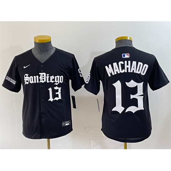 Youth San Diego Padres #13 Manny Machado Black Gothic Edition Vapor Limited Stitched Baseball Jersey