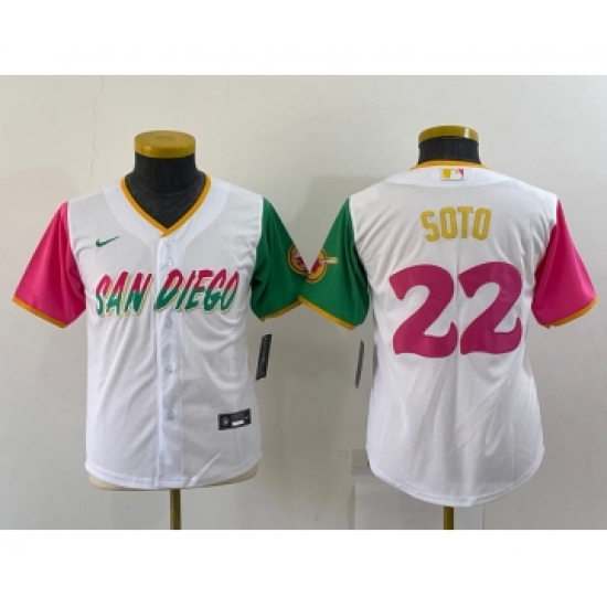 >Youth San Diego Padres #22 Juan Soto White 2022 City Connect Cool Base Stitched Jersey