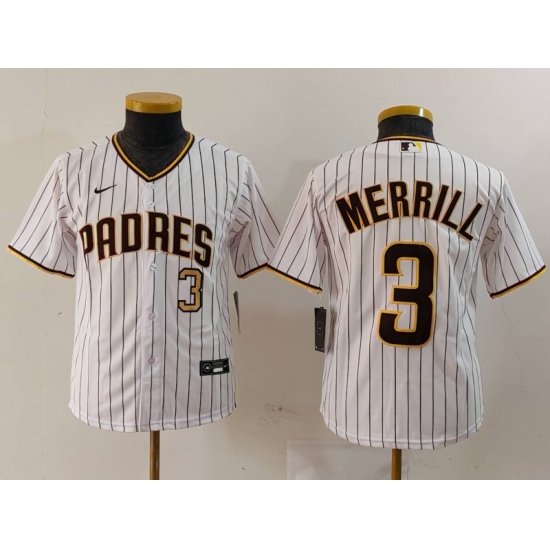 >Youth San Diego Padres #3 Jackson Merrill White 2023 Cool Base Stitched Jerseys