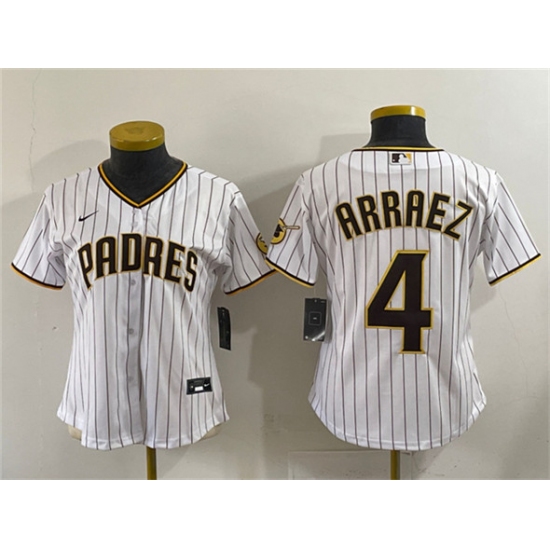 >Youth San Diego Padres #4 Luis Arraez White Stitched Baseball Jersey
