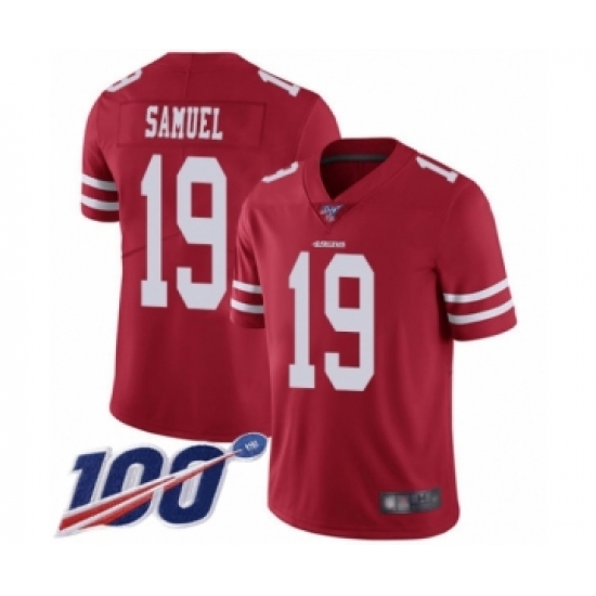 >Youth San Francisco 49ers #19 Deebo Samuel Red Team Color Vapor Untouchable Limited Player 100th Season Football Jersey