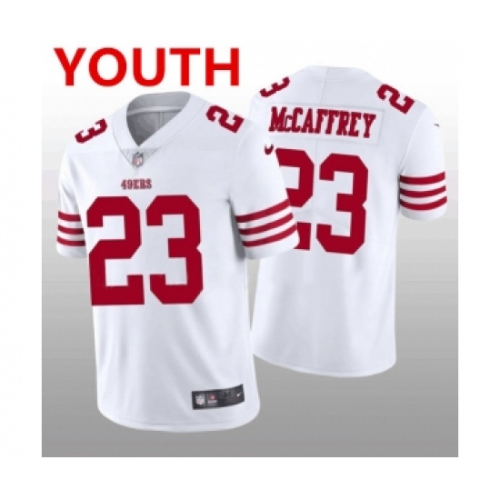 >Youth San Francisco 49ers #23 Christian McCaffrey White 2022 Vapor Untouchable Stitched Jersey