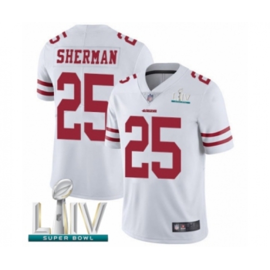 >Youth San Francisco 49ers #25 Richard Sherman White Vapor Untouchable Limited Player Super Bowl LIV Bound Football Jersey