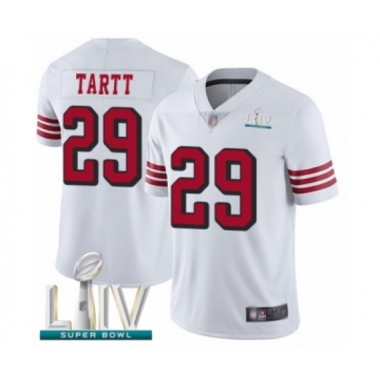 >Youth San Francisco 49ers #29 Jaquiski Tartt Limited White Rush Vapor Untouchable Super Bowl LIV Bound Football Jersey