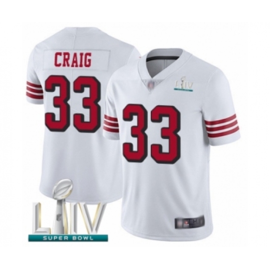 Youth San Francisco 49ers #33 Roger Craig White Vapor Untouchable Limited Player Super Bowl LIV Bound Football Jersey