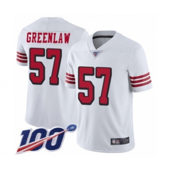 >Youth San Francisco 49ers #57 Dre Greenlaw Limited White Rush Vapor Untouchable 100th Season Football Jersey