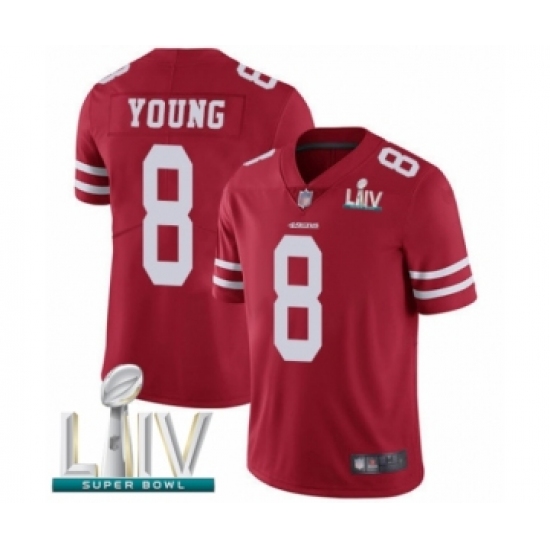 >Youth San Francisco 49ers #8 Steve Young Red Team Color Vapor Untouchable Limited Player Super Bowl LIV Bound Football Jersey
