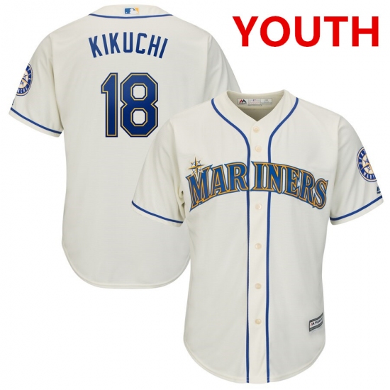 >Youth Seattle Mariners 18 Yusei Kikuchi Cream Cool Base Jersey